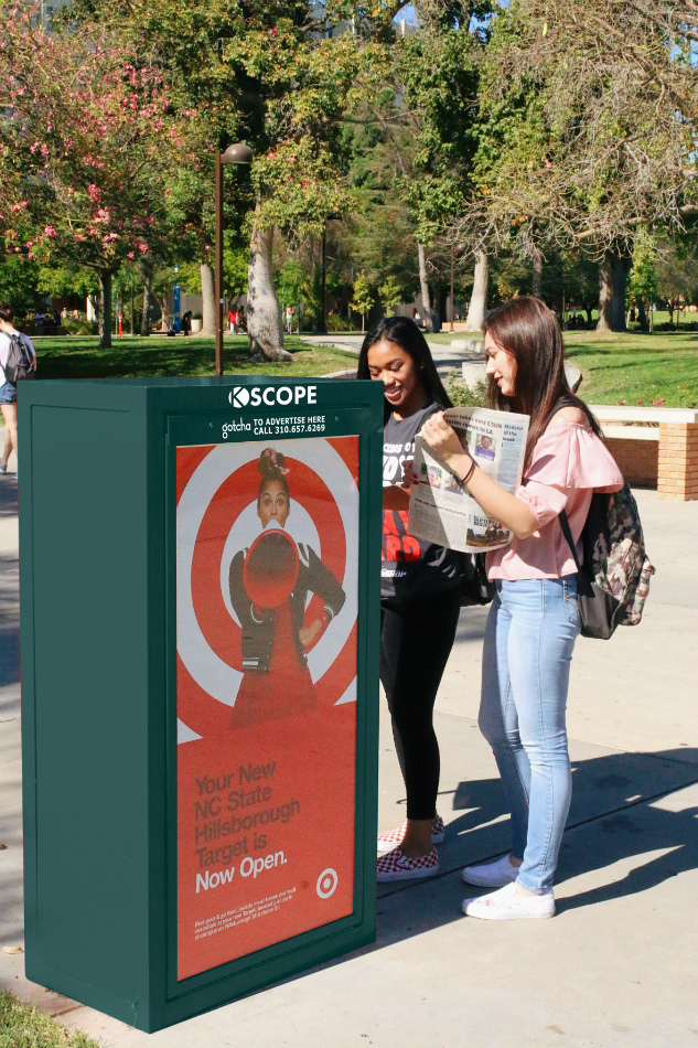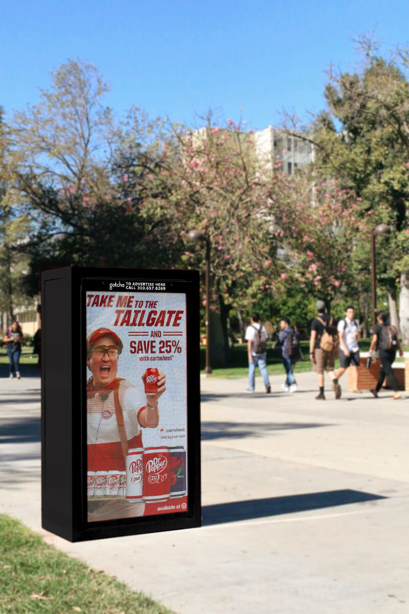 Gotcha is the largest operator of premium outdoor advertising on college campuses nationwide. Our cafefully culivated school partnerships connect advertisers with students through a medium that can't be delayed, skipped, or turned off. This network provides broad, efficient reach to a highly targeted audience.